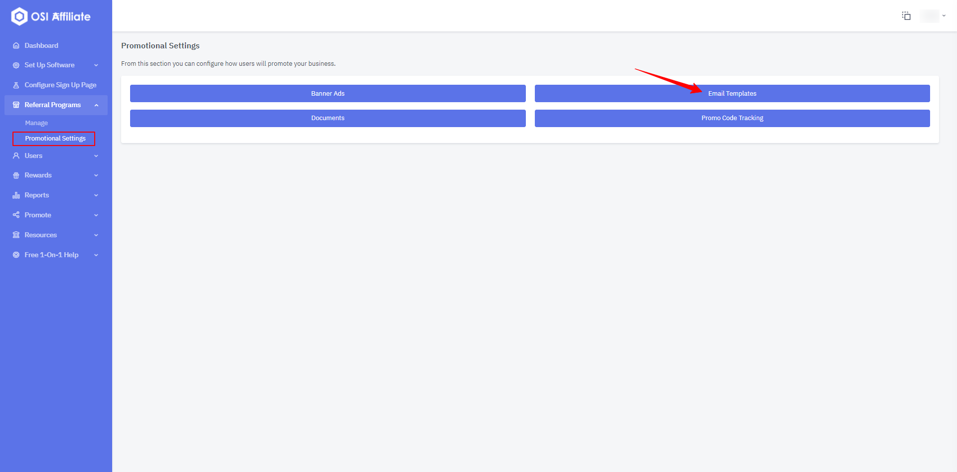 OSI Affiliate software provides many promotional options for your affiliates. One of these options is for you to provide pre-written Email templates that they can easily cut and paste and send out using their own email programs. To generate these templates, please follow the steps below.