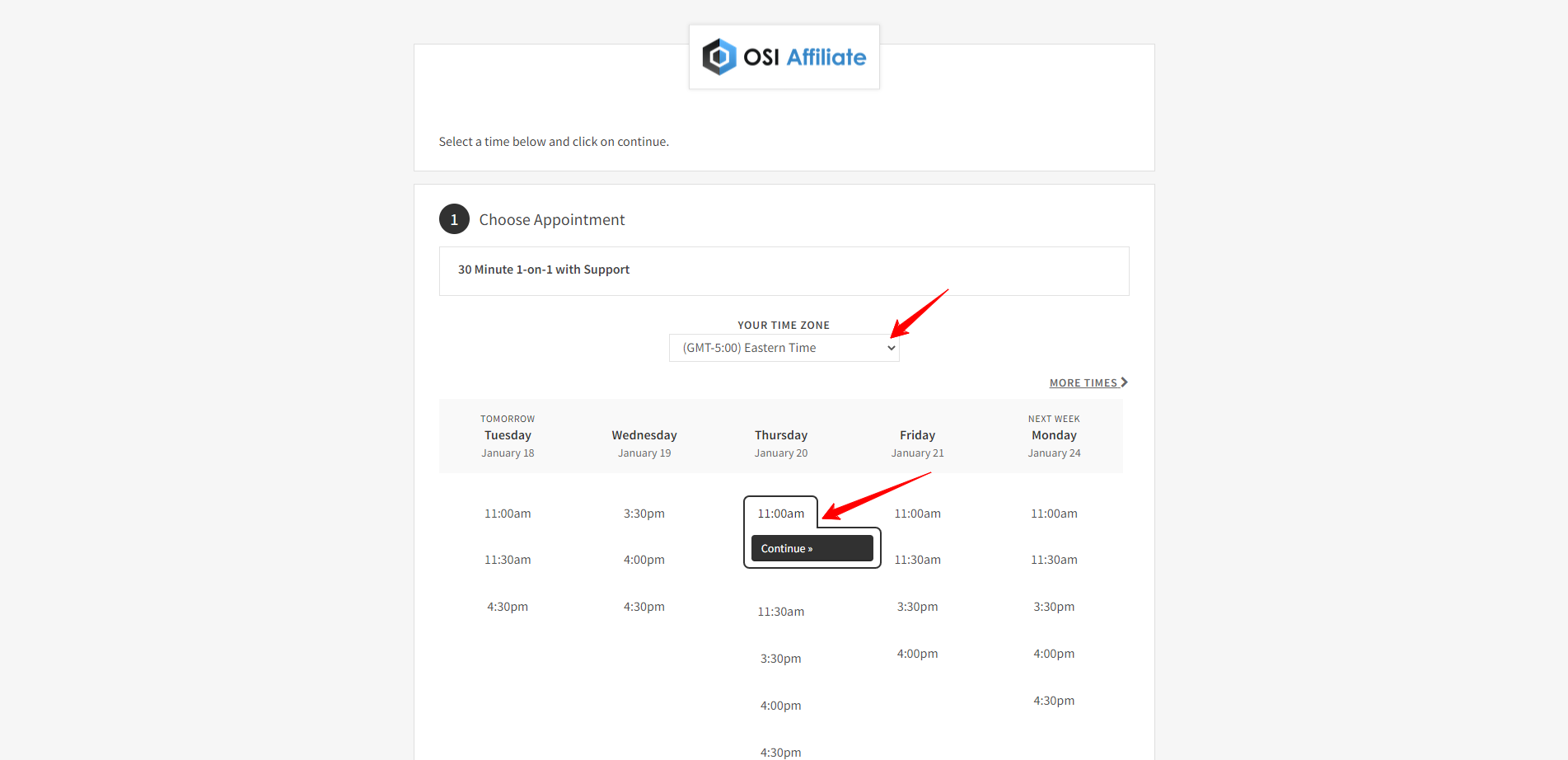 Step 3. Select the Time zone and Date & time that you prefer. The Specialist will call you for a live demo of the Affiliate Software.