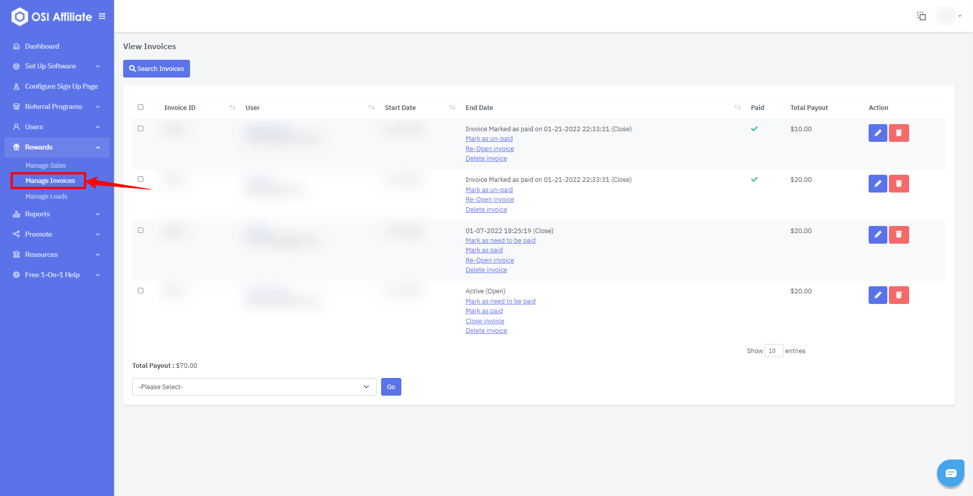 Steps 2. Click on Manage Invoices found on the left-side pane.