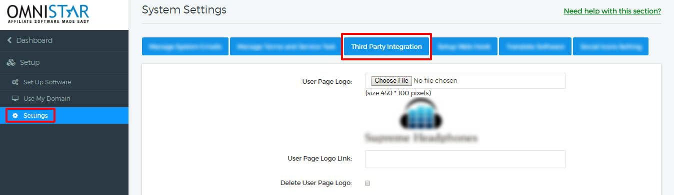 Step 1: From Admin Dashboard, go to Set Up Software -> Settings and click on "Third Party Integration".