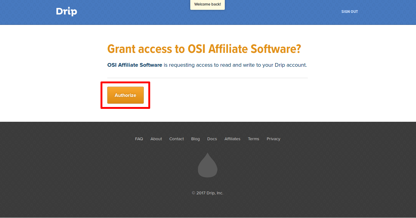Step 5: Authorize the OSI Affiliate App on Drip.