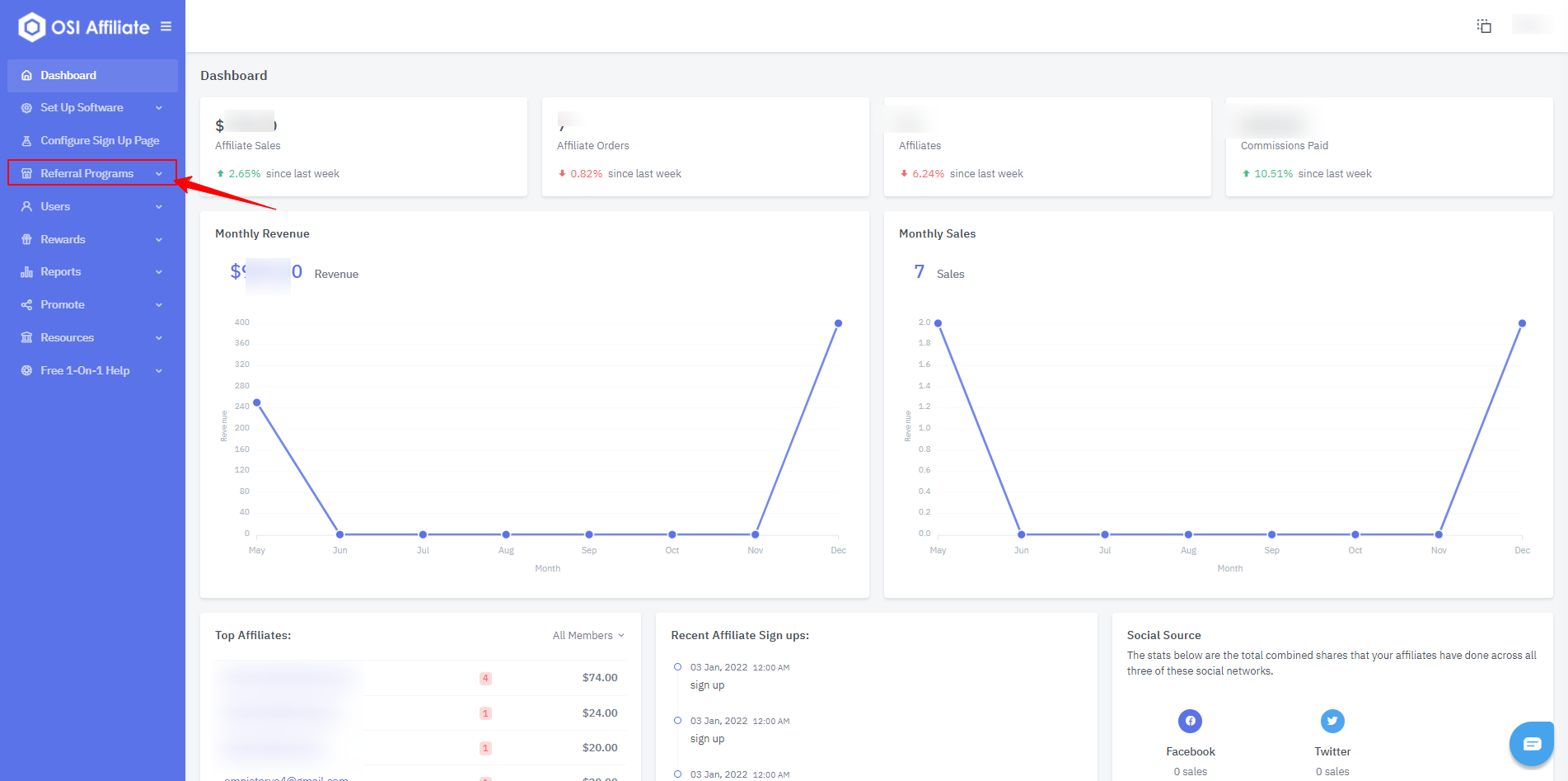 1. From the Admin Dashboard, click on "Referral Programs".